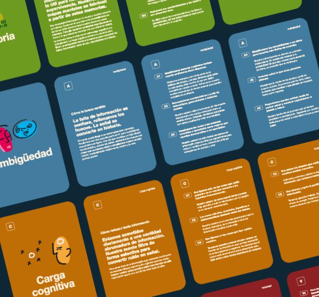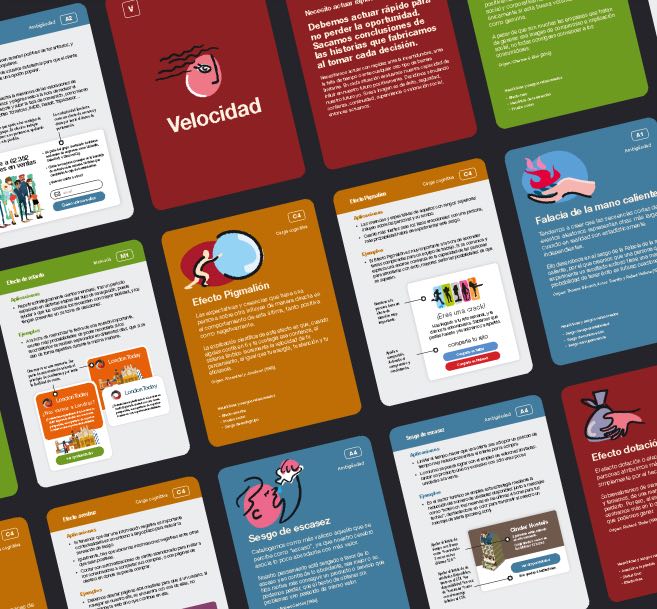 Cartas con descripciones de las principales categorías de sesgos y heurísticas.